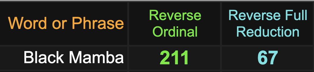 Don’t forget Kobe died on a date with 67 numerology, in a 67 location, Calabasas.