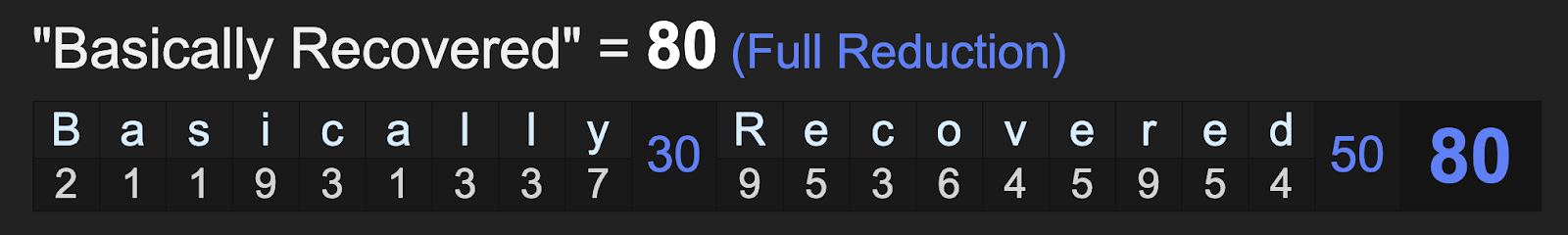 *5/1/776 = 5+1+17+76 = 99 *Thirteen = 20+8+9+18+20+5+5+14 = 99