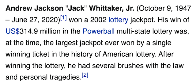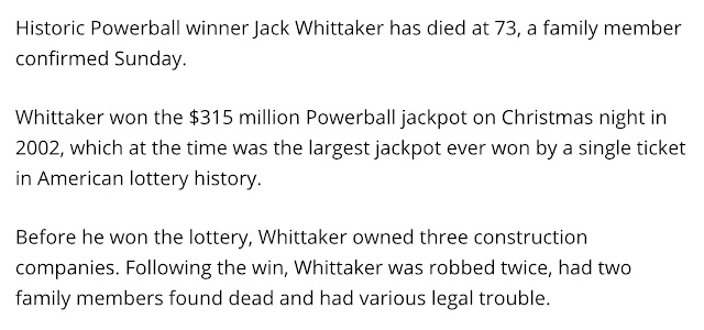 Historic Christmas 2002 Powerball winner, Jack Whittaker, dead at 73, June 27, 2020, the day leaving 187 days in the year