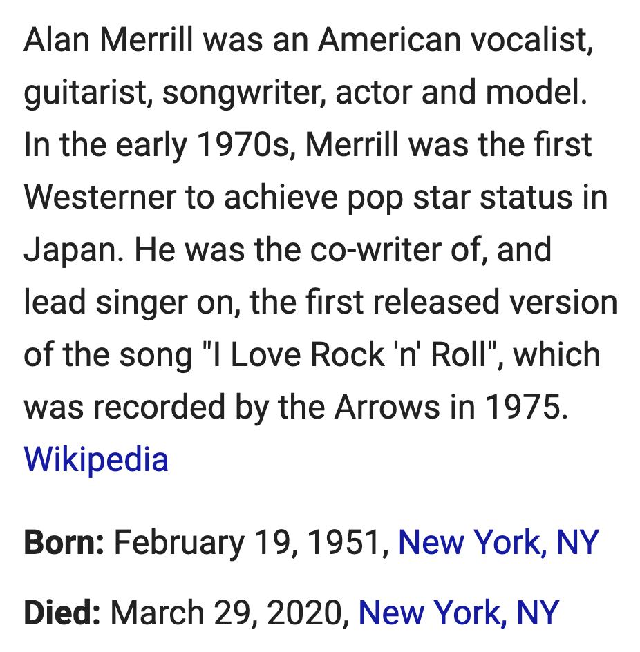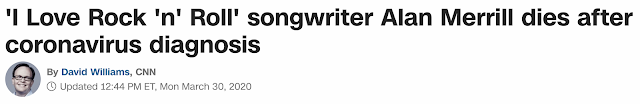 I Love Rock N’ Roll songwriter Alan Merrill dies from coronavirus, March 29, 2020