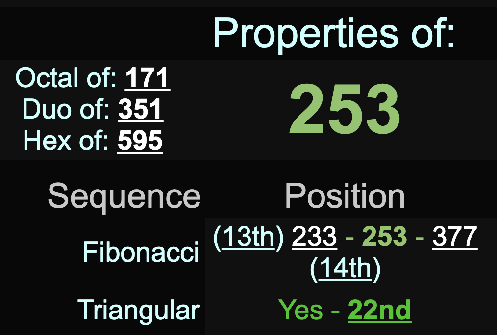 His death comes Wednesday, March 25, 2020, or 25/3, like 253, the 22nd triangular number.