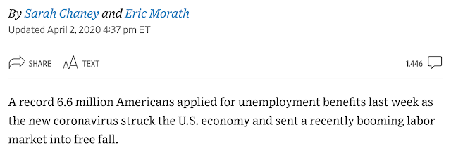 Take a look at this headline from April 2, 2020, about a record 6.6 million jobless claims. The fact that it came on April 2, or 4/2, like 42 matters.