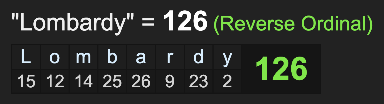 Notice Lombardy sums to 126, the number encoded in Kobe Bryant’s January 26 death, a man who is now buried in “Corona del Mar”, equating to “Coronavirus” in both reduction ciphers. He is also a man who grew up in Italy…
