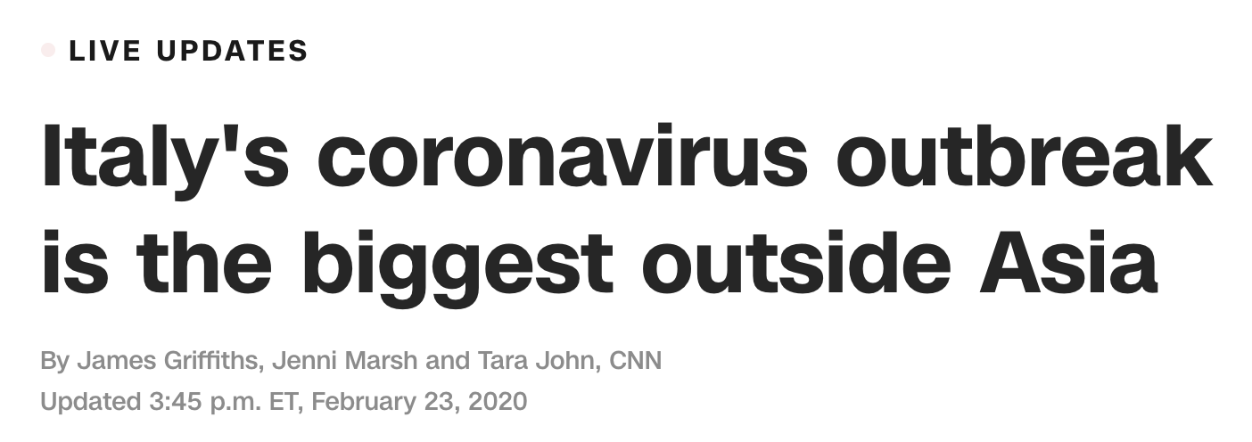 Italy’s coronavirus outbreak is the biggest outside Asia, February 23, 2020