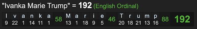 This news comes 192-days after her birthday. *Ivanka Marie Trump = 192