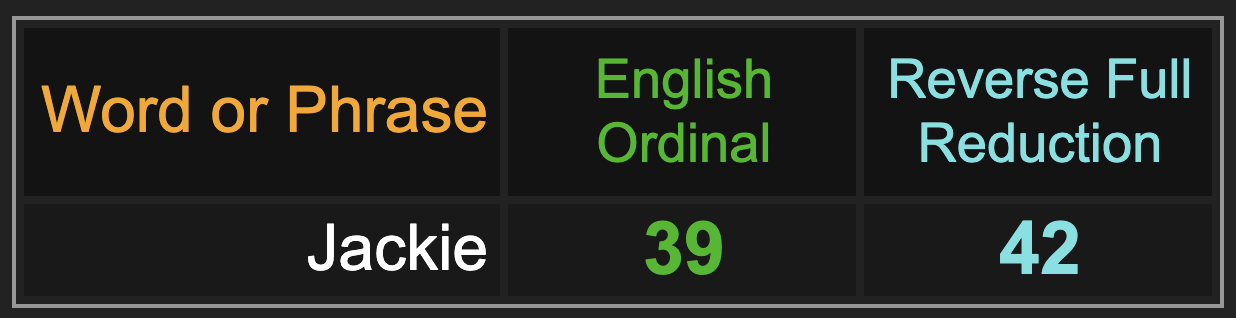 He has died 39 weeks after either his 42nd or 43rd birthday, of course Jackie wore #42.