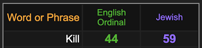 As we know, 44 is associated with killing. Kill = 11+9+12+12 = 44