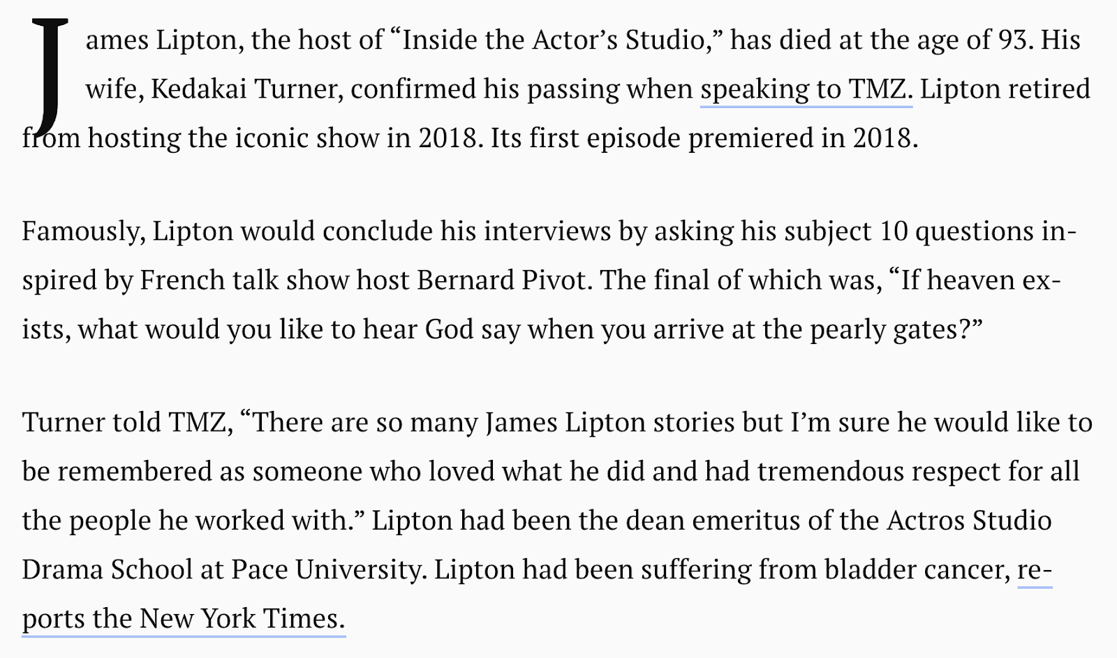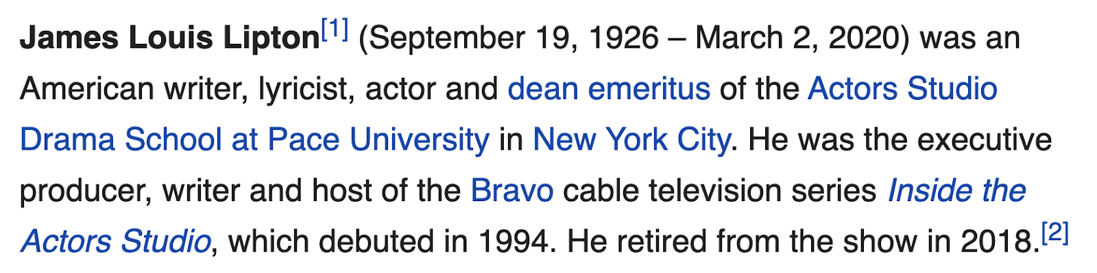 James Lipton of Inside the Actor’s Studio, dead at 93, March 2, 2020