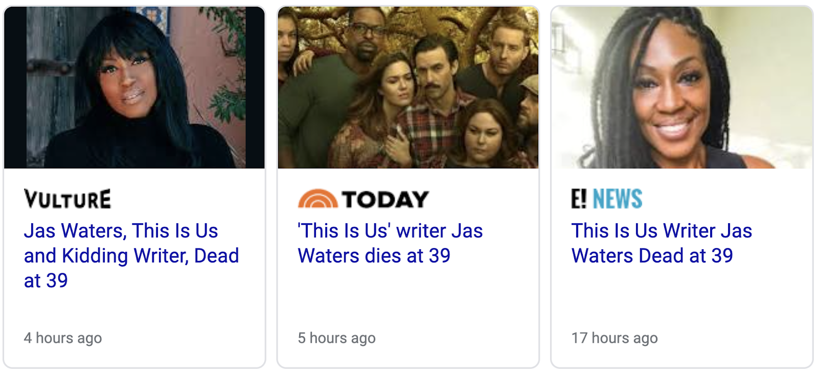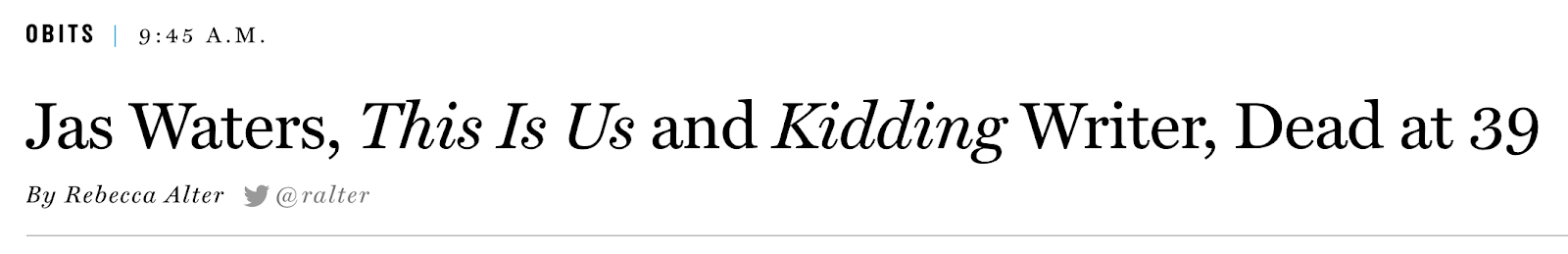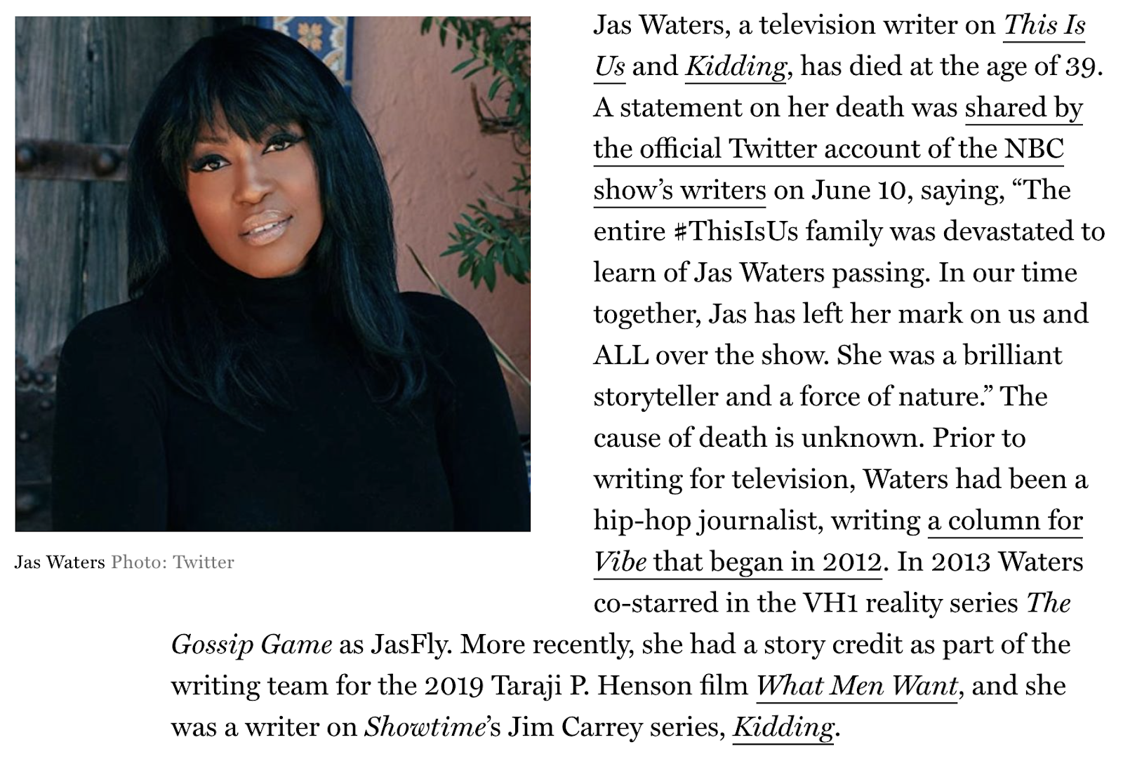 Jas Waters, ‘This Is Us’ writer dies at 39, June 10, 2020