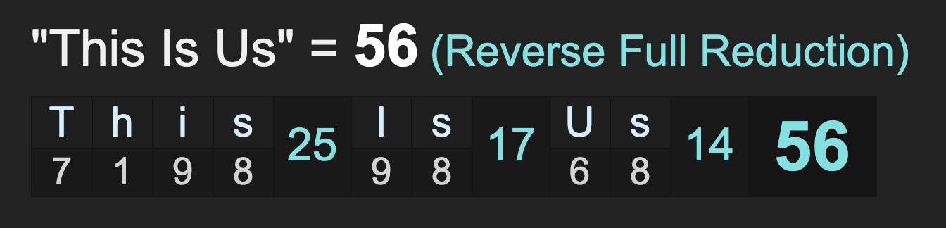 The announcement was made June 10, 2020, a date with 56 numerology.  Notice that ‘This Is Us’ sums to 56.  6/10/2020 = 6+10+20+20 = 56