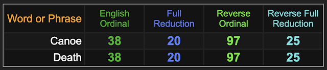 We’ll begin with the gematria of ‘canoe’, and its relationship with ‘death’.