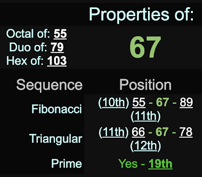 Recall, Montana wore #16 with he 49ers, and #19 with the Chiefs. Of course, the Chiefs won the 2019 season by winning the Super Bowl over the 49ers. *Kansas City = 67 (19th prime)