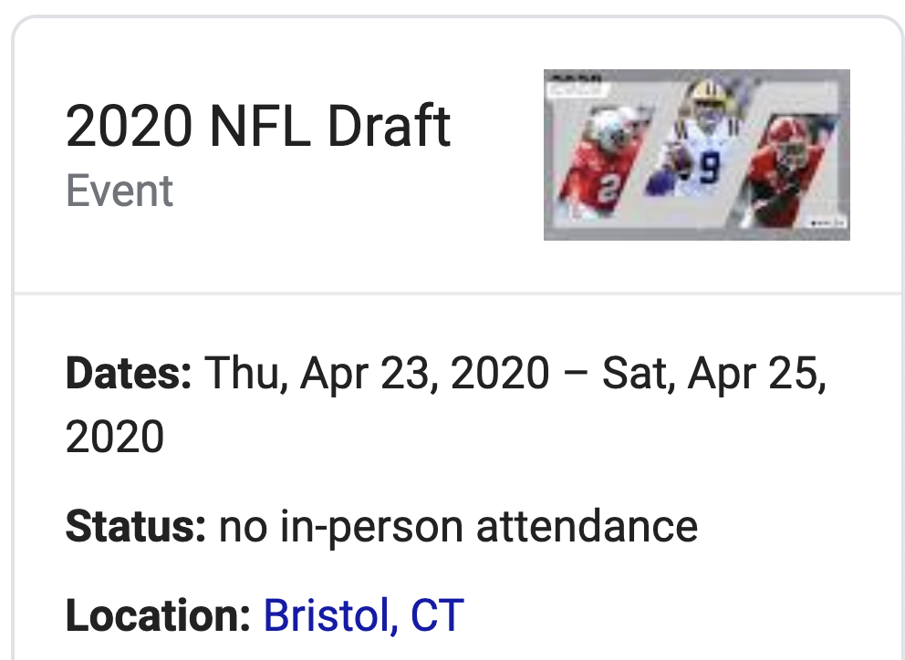 The over / under for the game was 67.5 points, and it should have hit the over, but the zebras took a 50+ yard TD away from Clemson in the fourth quarter. Notice, 67 points were scored in the game, concluding the 2019 season, where 67 is the 19th prime. Now the star of that game, Joe Burrow, will go #1 in the draft, April 23, 2020, a date with 67 numerology.