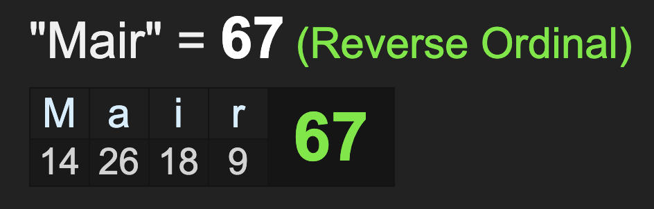 His surname, Mair, has that fateful blood sacrifice gematria.