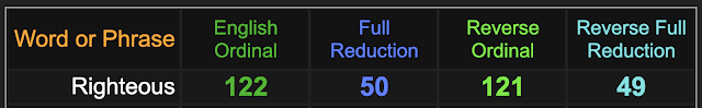 The gematria of the song ‘Righteous’ is as follows: