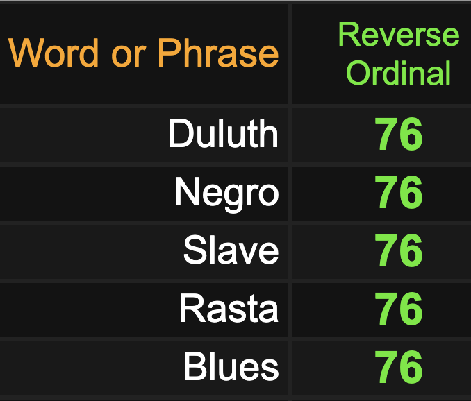 Duluth also has the 76 gematria, reminding of the million man march on the day leaving 76 days left in the year.