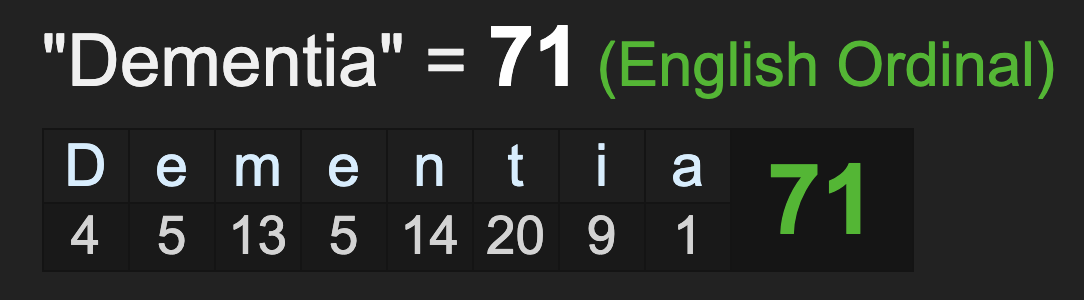 The cause of death is ‘dementia’.