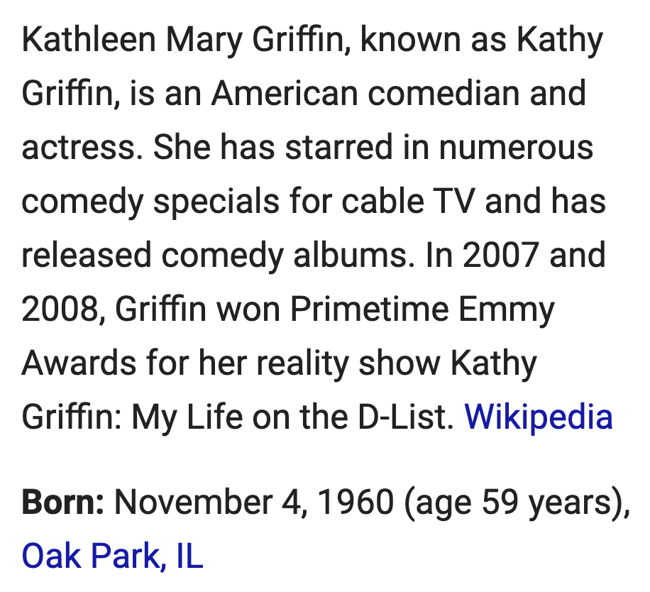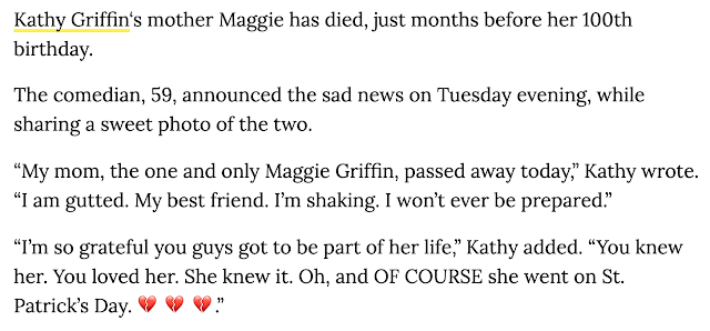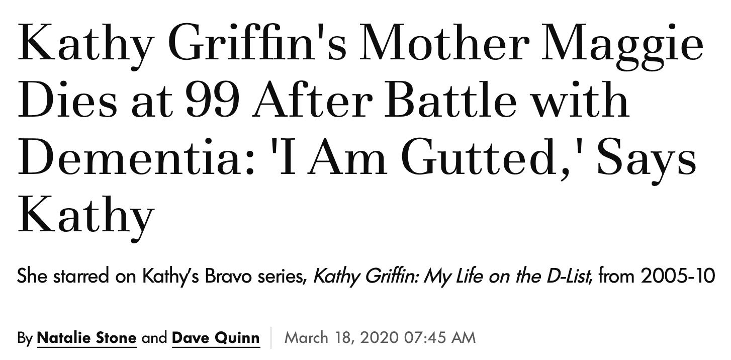 Kathy Griffin’s mother dies from dementia, per the news, March 17, 2020, St. Patrick’s Day