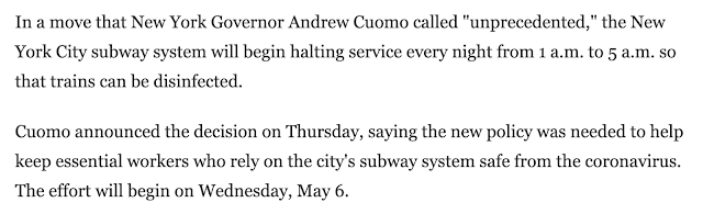 https://www.npr.org/2020/04/30/848486377/nyc-subways-to-close-every-night-for-disinfection