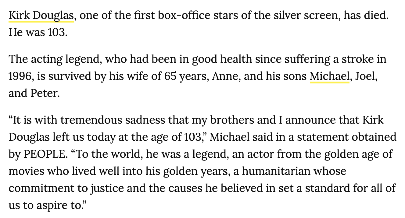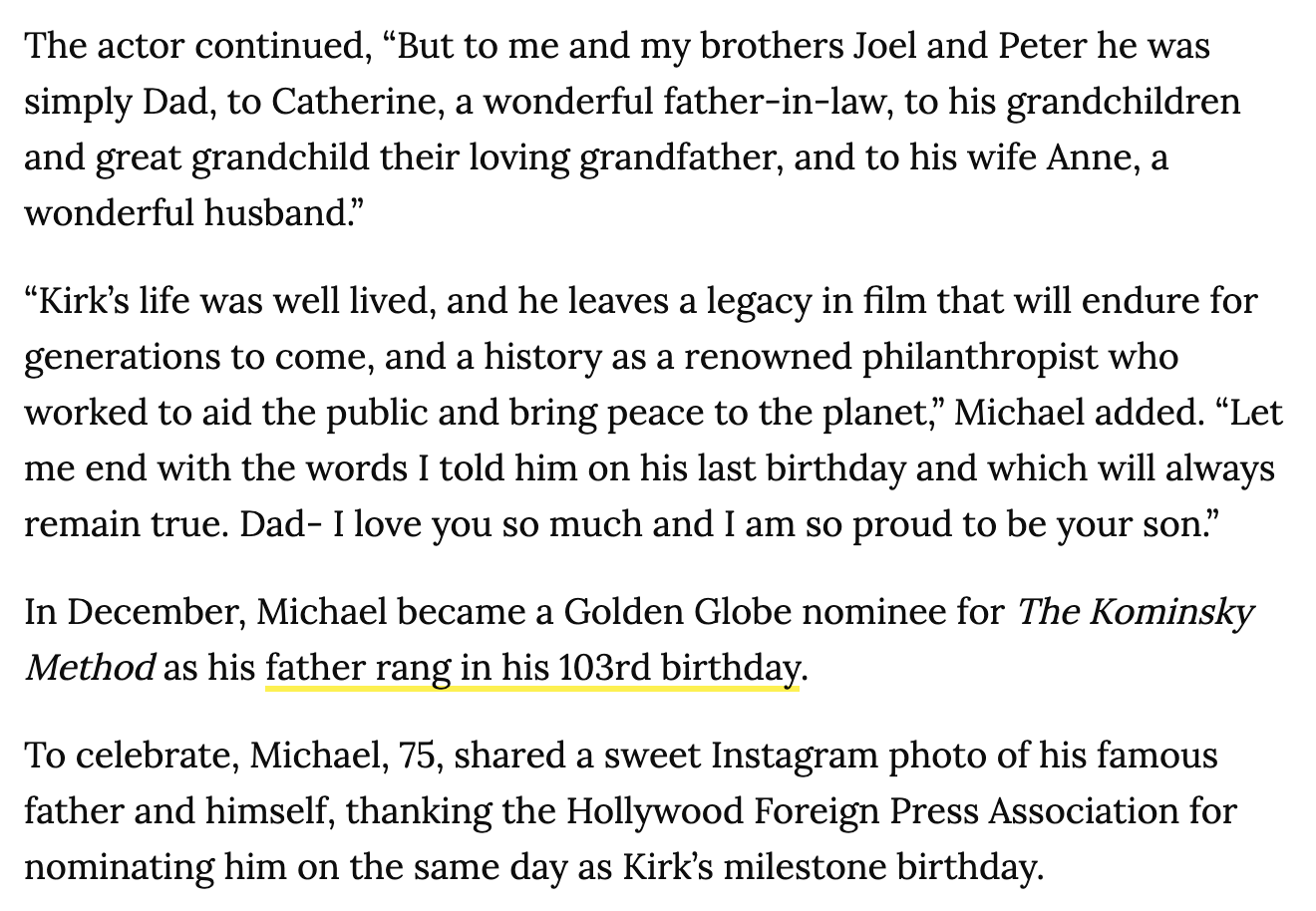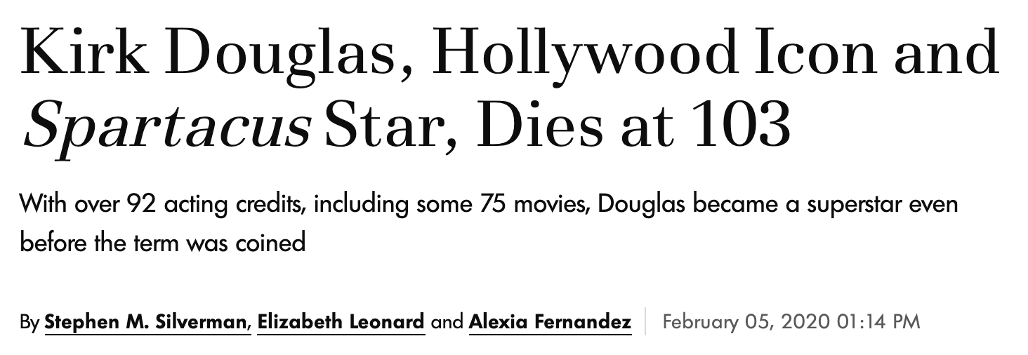 Kirk Douglas, Hollywood star, dead at 103, February 5, 2020