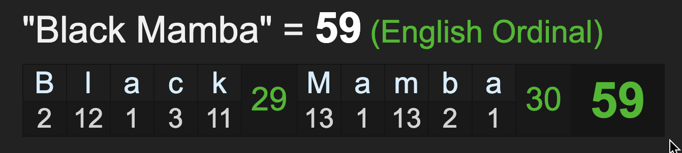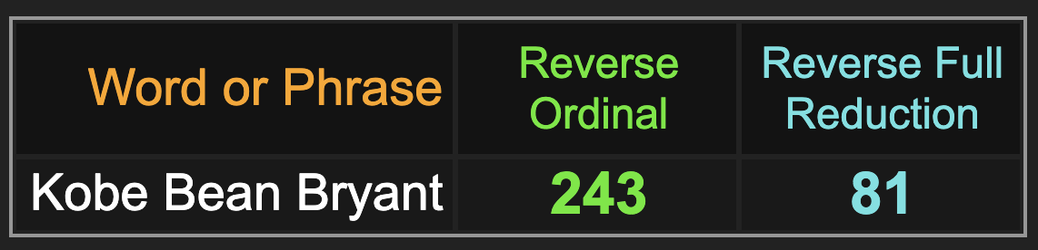 ‘NBA Logo’ and ‘Kobe’ have fitting Gematria as well.