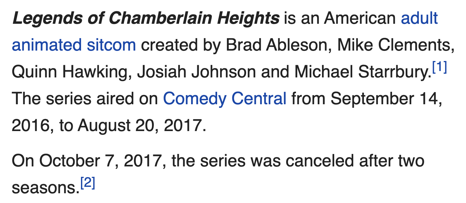 https://en.wikipedia.org/wiki/Legends_of_Chamberlain_Heights#Episodes