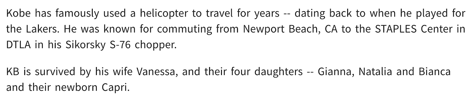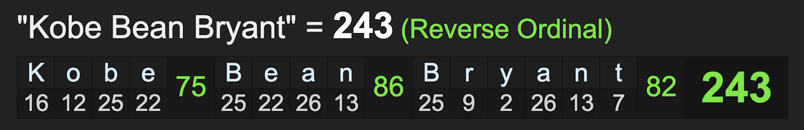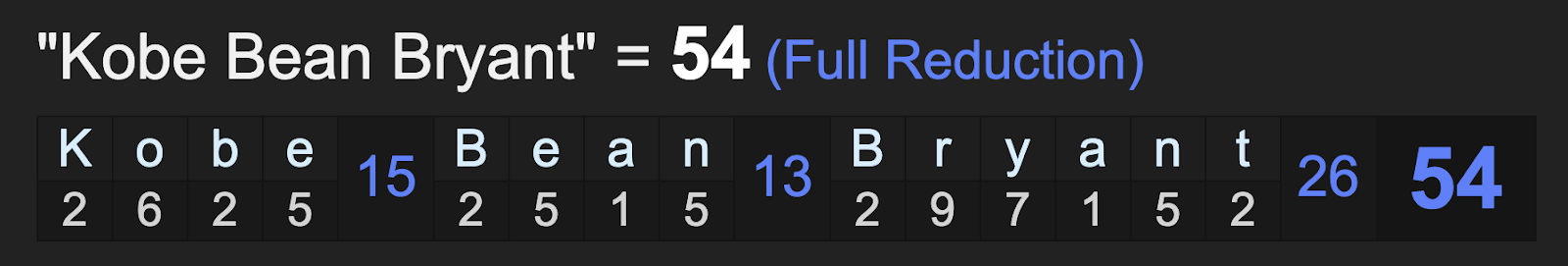 They have now released the names of victims who died with Kobe, and the first two out sum to 54 and 101, numbers we have identified.