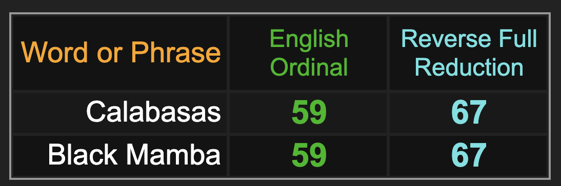 And notice how ‘Calabasas, California’ factors in. Keep in mind 666 is taught about in Revelation 13:18, the 66th book of the Bible.