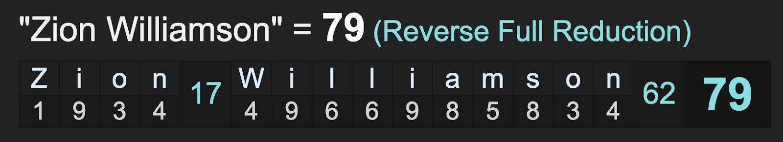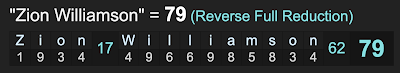 79 also connects to Zion Williamson, who is playing on ABC today, his third career game, and the one that will be seen by most people, because it is on regular TV.
