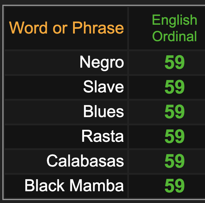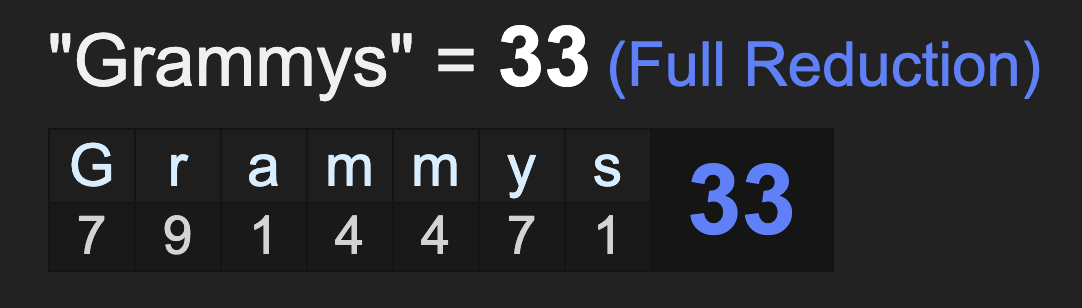 Keep in mind the first Grammy’s were in 1959, and on May 4, or 5/4. This matters because ‘Black Mamba’ sums to 59 and ‘Kobe Bean Bryant’ sums to 54.