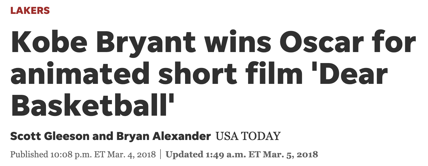 Read about Kobe’s Oscar for ‘Dear Basketball’:
