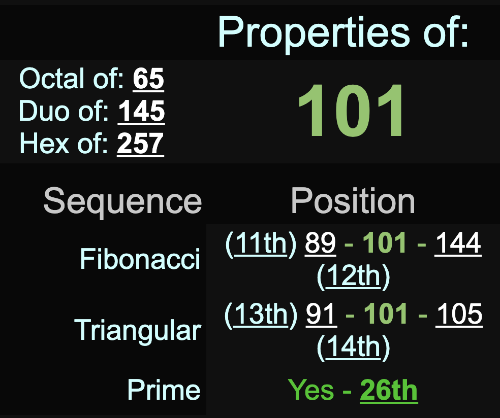 His death comes 100-days before his wife’s 38th birthday or a span of 101. The death also comes 38-weeks after his wife’s 37th birthday, or 266-days.