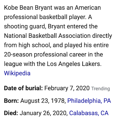 Notice in three quarters, one of two teams scored 41-points. Of course, Kobe died at age 41.