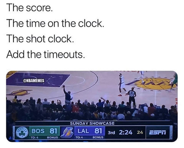 This happened Sunday, February 23, 2020, the day before the Kobe Bean Bryant Memorial on 2/24. Notice the score is 81-81, with 2:24 on the clock as they stop time.