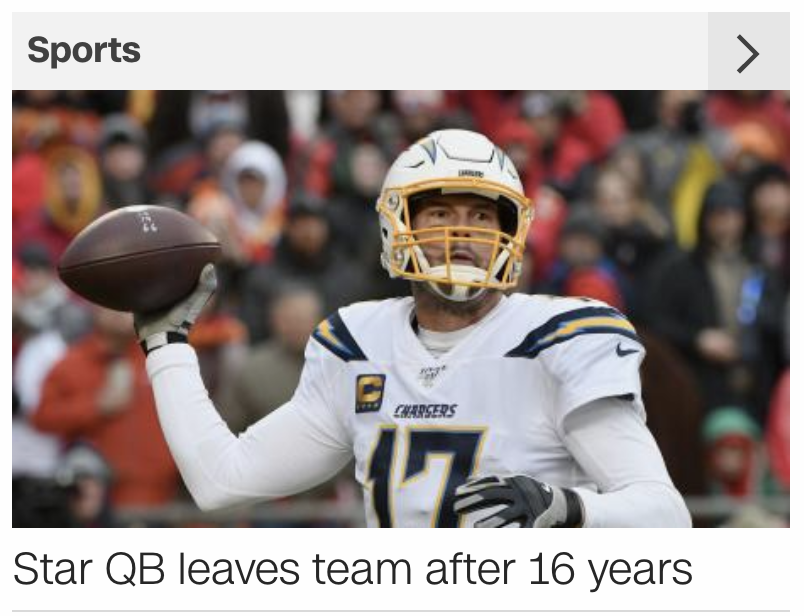 Los Angeles Chargers part ways with Philip Rivers, February 10, 2020 +Tom Brady rumors