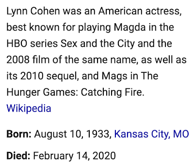 Lynn Cohen of Sex and the City, dead at 86, February 15, 2020 news +Dead on Valentine’s Day