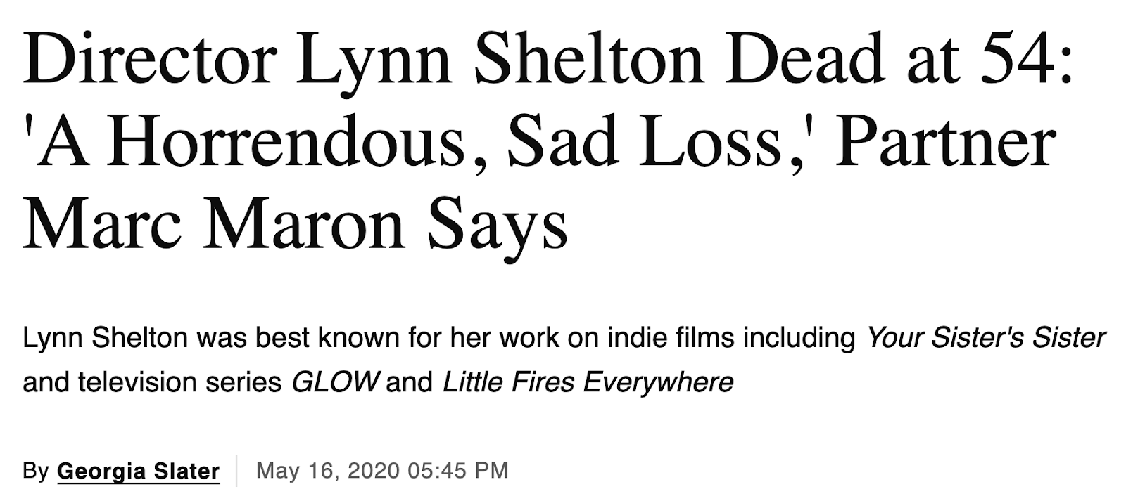 Lynn Shelton, partner of comedian Marc Maron, dead at 54, May 15, 2020
