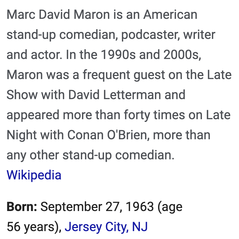 His name Marc Maron has standout gematria as well.