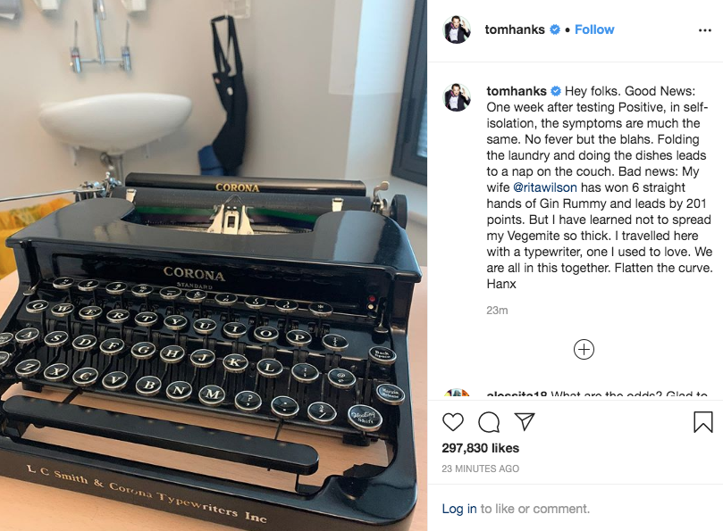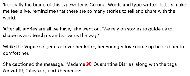 As for Madonna using a corona typewriter, “ironically”, recall Tom Hanks recently posted on Instagram, also paying tribute to Corona typewriters. Probably just more “irony”. In that post, he mentioned losing by 201 point in Gin Rummy, a nod to Event 201, which simulated a coronavirus outbreak. That event took place October 18, 2019, the same day the military world games began in Wuhan, China.