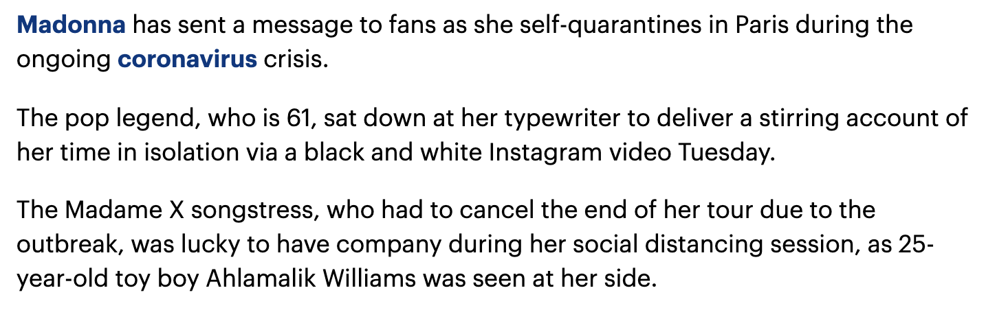 Madonna’s album came out 221-days before the first patient in the U.S., or a span of 222-days.