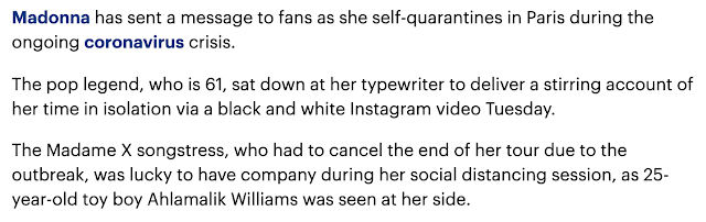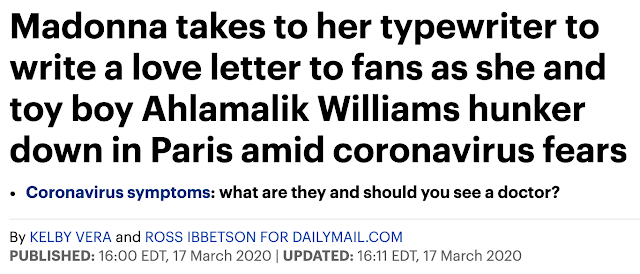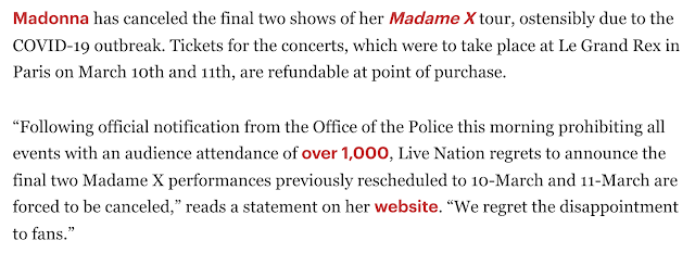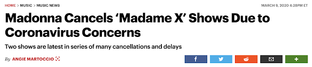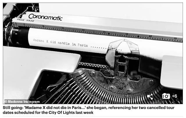 Madonn’a Madame X album features corona typewriter & her tour cancellations March 10-11, 2020, in light of Tom Hanks coronavirus diagnosis, March 11, 2020