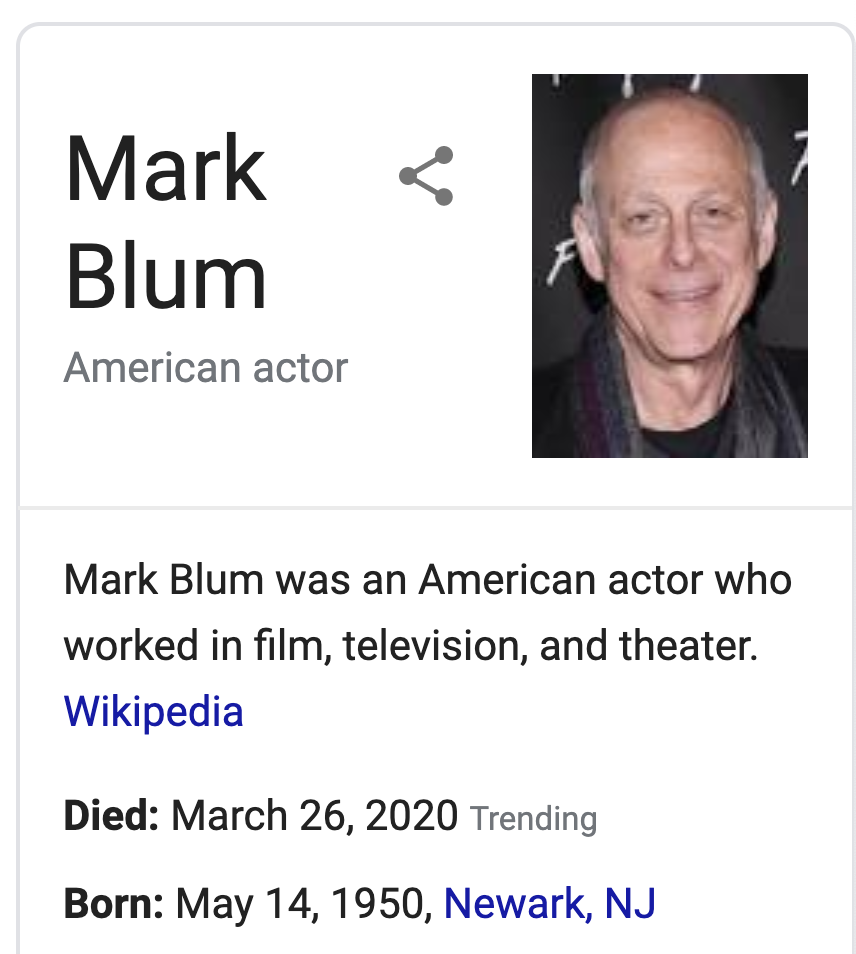 Mark Blum is dead March 26, 2020, the 86th day of the year.