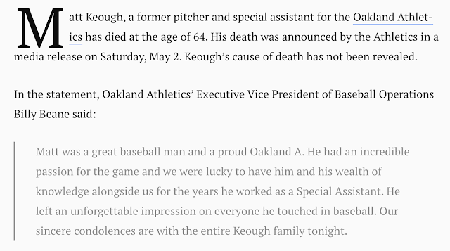 Matt Keough, Oakland Athletic, dead at 64, days after his daughter Kara Keough-Bosworth loses her child