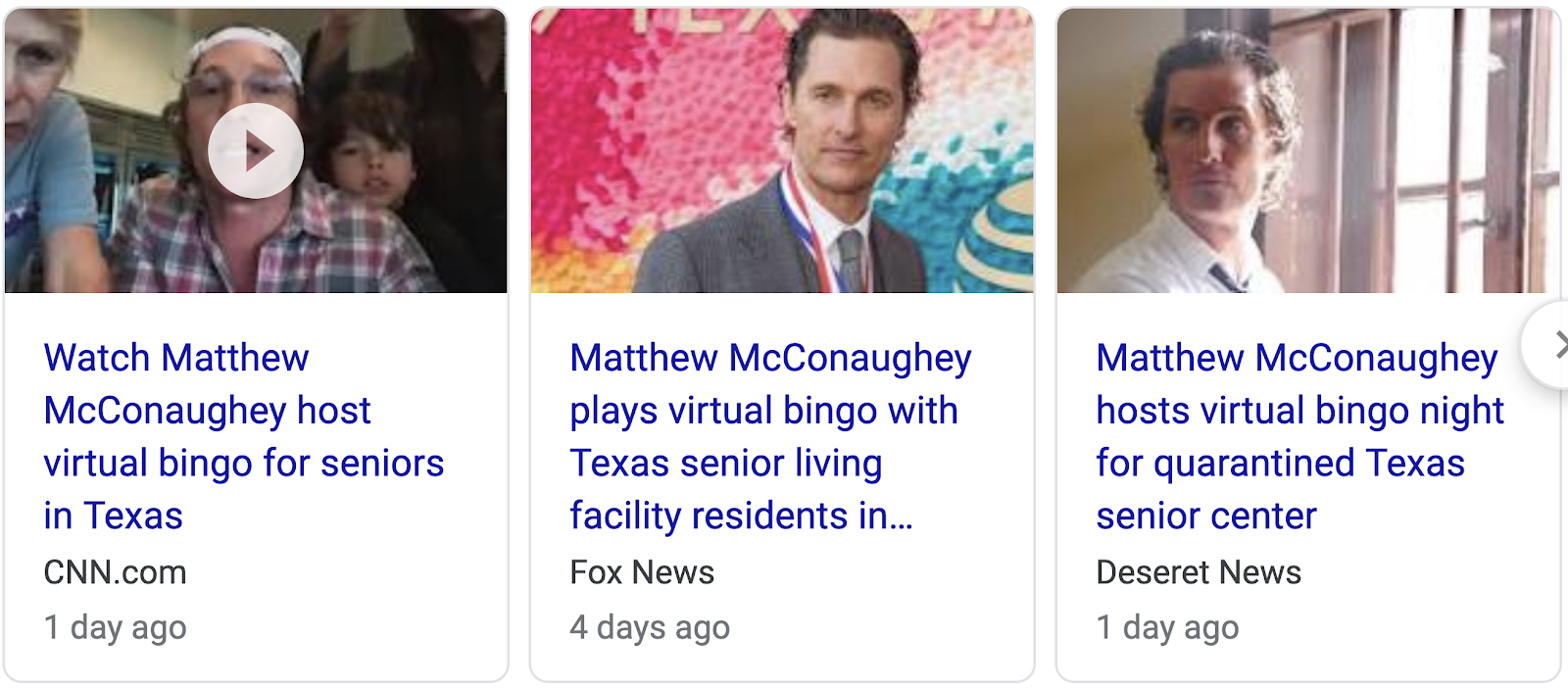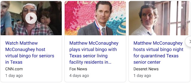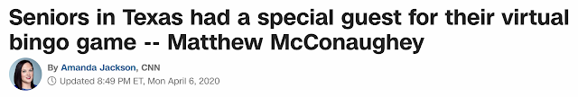 Matthew McConaughey hosts virtual bingo for senior citizens, April 6-7, 2020 news