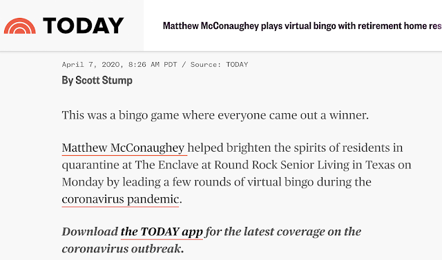 Matthew McConaughey? Quarantine? Virtual Bingo!?