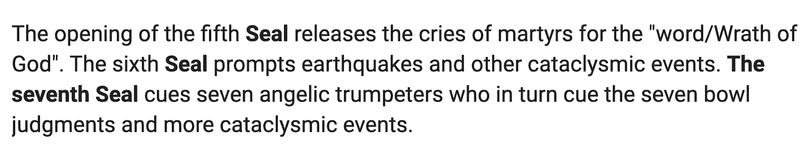 Again, Revelation, about the seventh seal, is the concluding book of the New Testament, which the Christian faith is based in.
