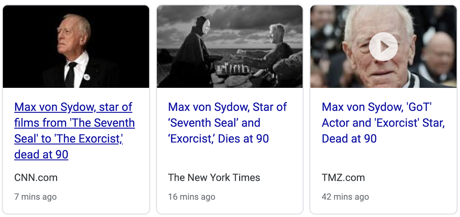 Max von Sydow, Seventh Seal, Exorcist, GOT, & Greatest Story Ever Told actor, dead at 90, Sunday, March 8, 2020 +How it fits in with the coronavirus outbreak