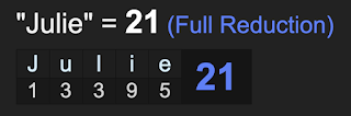 The name Beckett as well as the name of the mother who carried him, Julie, sum to 21.