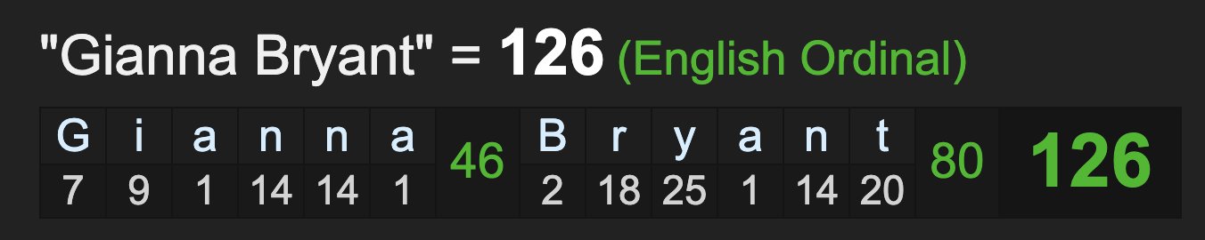 February 24 will also be the 126th day of the NBA season, and Kobe died on 1/26 (reportedly).