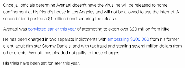 Michael Avenatti released from jail temporarily over coronavirus concerns, April 11, 2020, his 56th day of his age